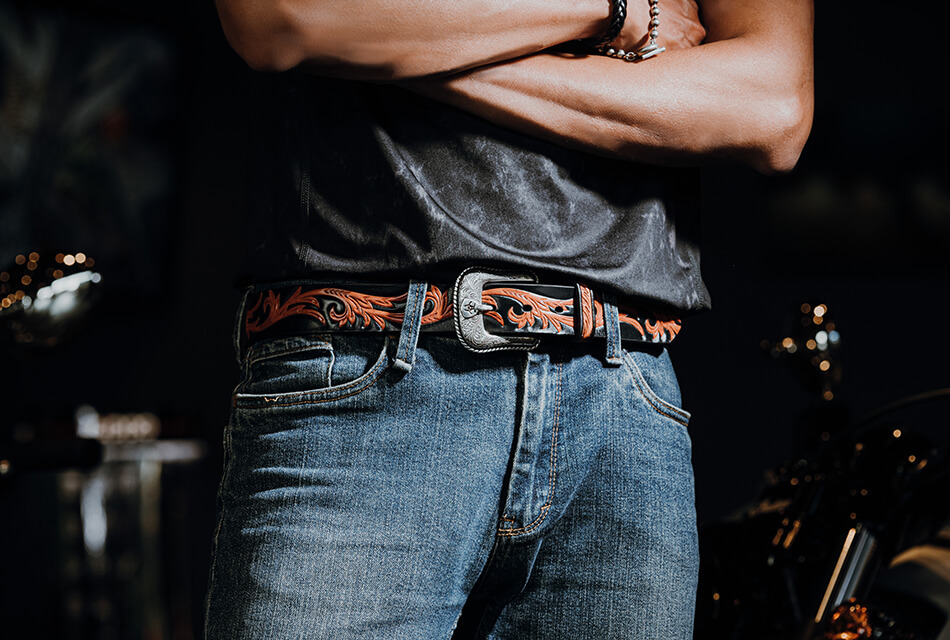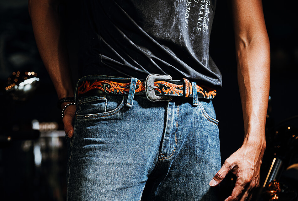 源自於美國西部牛仔的設計靈感,運用印地安元素、復古刻花、個性鉚釘、真皮皮革、馬毛..等來完成每一款真皮皮帶的設計,讓每一款真皮皮帶都能蘊含西部牛仔的率性與狂野,讓配戴者穿戴出自我率性。