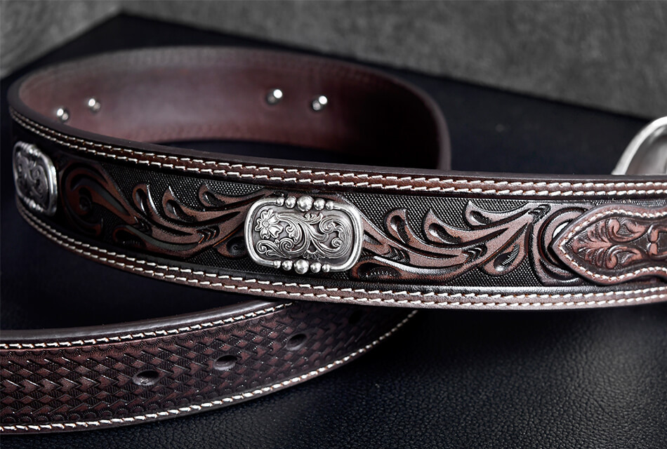 源自於美國西部牛仔的設計靈感,運用印地安元素、復古刻花、個性鉚釘、真皮皮革、馬毛..等來完成每一款真皮皮帶的設計,讓每一款真皮皮帶都能蘊含西部牛仔的率性與狂野,讓配戴者穿戴出自我率性。