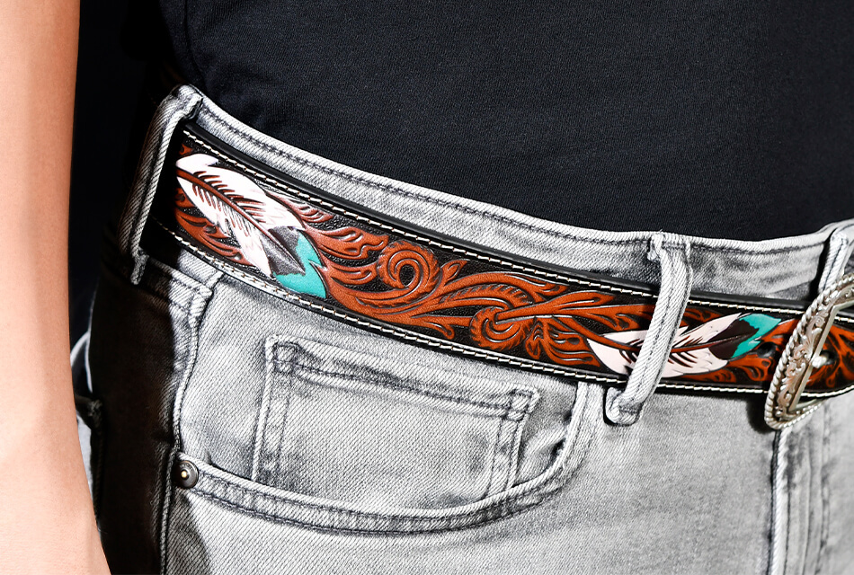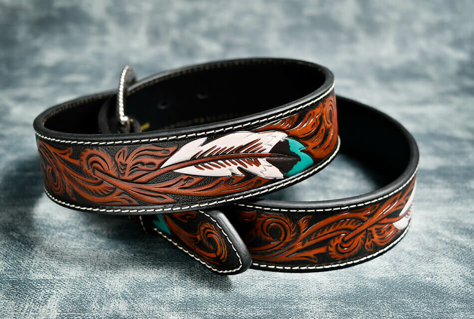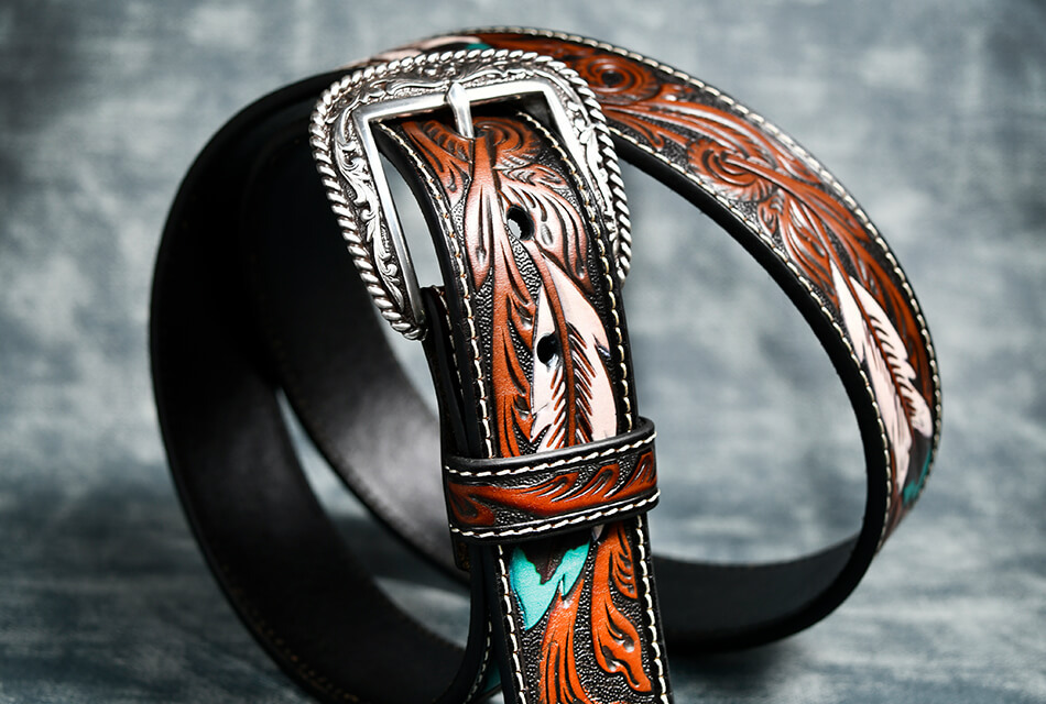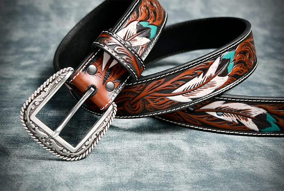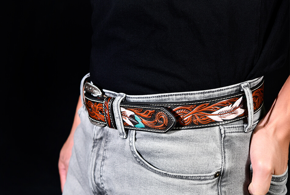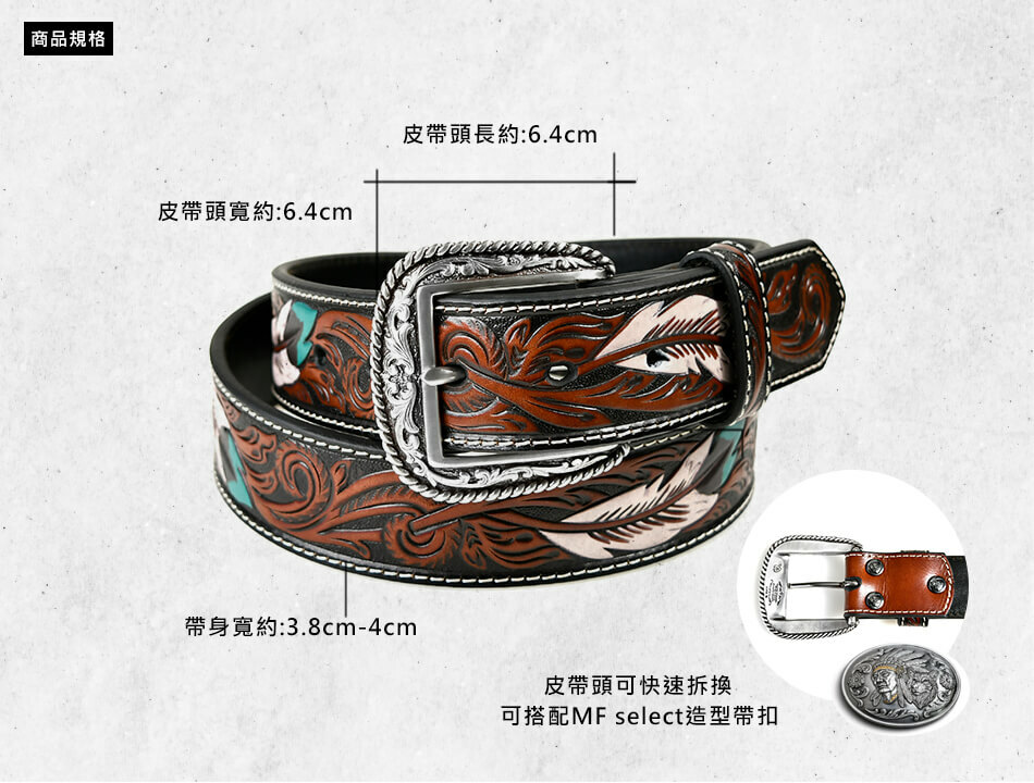 源自於美國西部牛仔的設計靈感,運用印地安元素、復古刻花、個性鉚釘、真皮皮革、馬毛..等來完成每一款真皮皮帶的設計,讓每一款真皮皮帶都能蘊含西部牛仔的率性與狂野,讓配戴者穿戴出自我率性。