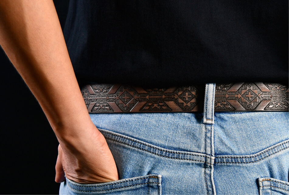 源自於美國西部牛仔的設計靈感,運用印地安元素、復古刻花、個性鉚釘、真皮皮革、馬毛..等來完成每一款真皮皮帶的設計,讓每一款真皮皮帶都能蘊含西部牛仔的率性與狂野,讓配戴者穿戴出自我率性。