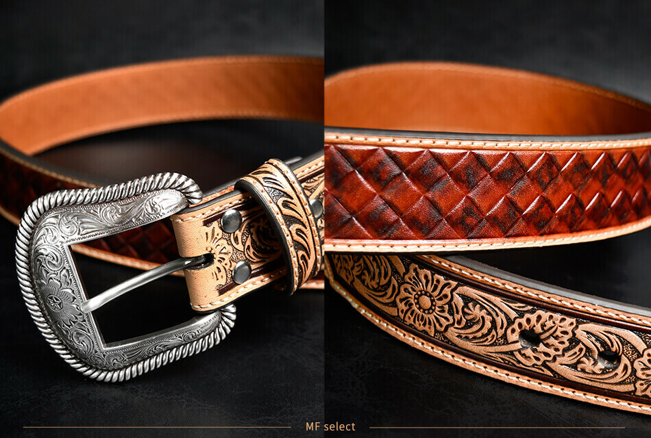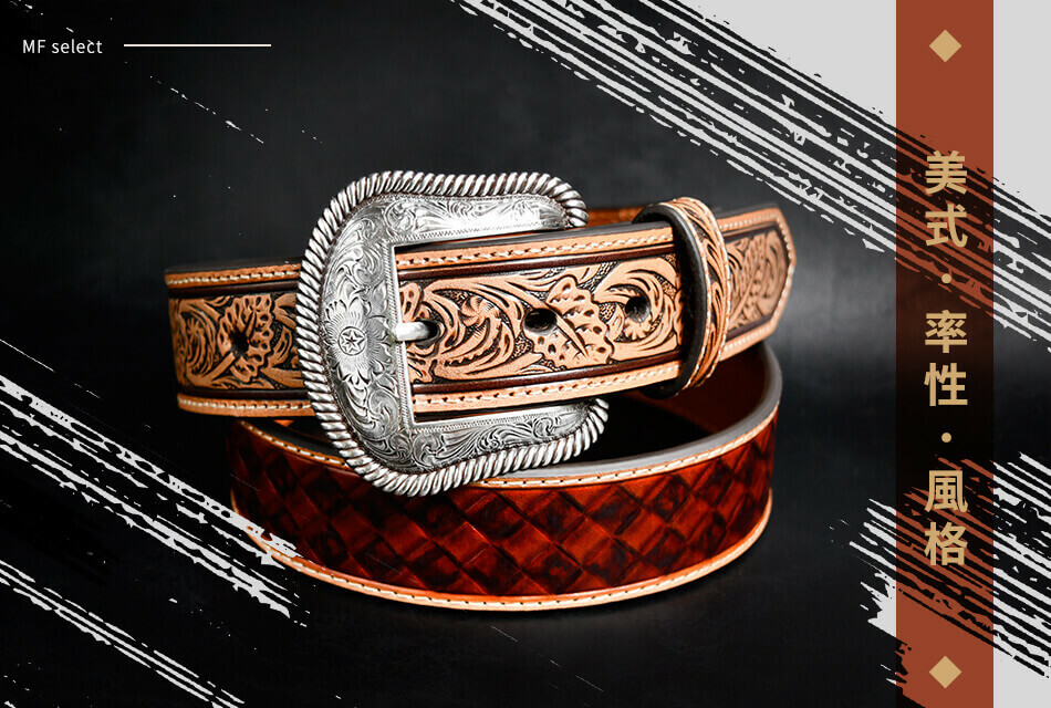 源自於美國西部牛仔的設計靈感,運用印地安元素、復古刻花、個性鉚釘、真皮皮革、馬毛..等來完成每一款真皮皮帶的設計,讓每一款真皮皮帶都能蘊含西部牛仔的率性與狂野,讓配戴者穿戴出自我率性。