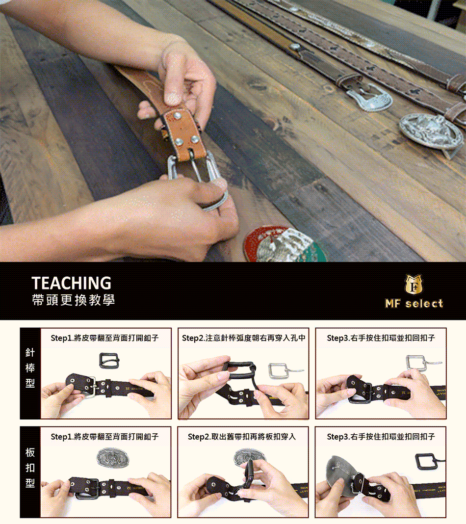 ※皮帶出貨皆附贈原廠針棒扣,造型皮帶扣(板扣)需另選購