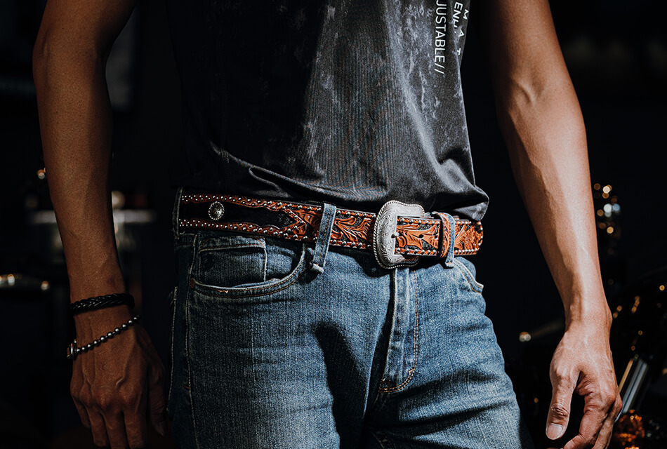 源自於美國西部牛仔的設計靈感,運用印地安元素、復古刻花、個性鉚釘、真皮皮革、馬毛..等來完成每一款真皮皮帶的設計,讓每一款真皮皮帶都能蘊含西部牛仔的率性與狂野,讓配戴者穿戴出自我率性。
