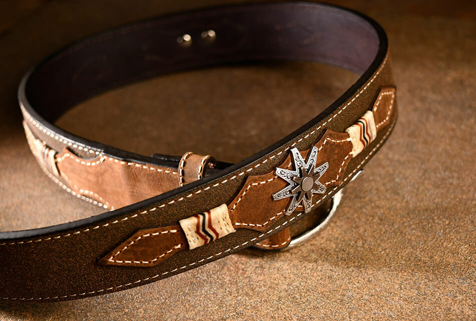 源自於美國西部牛仔的設計靈感,運用印地安元素、復古刻花、個性鉚釘、真皮皮革、馬毛..等來完成每一款真皮皮帶的設計,讓每一款真皮皮帶都能蘊含西部牛仔的率性與狂野,讓配戴者穿戴出自我率性。