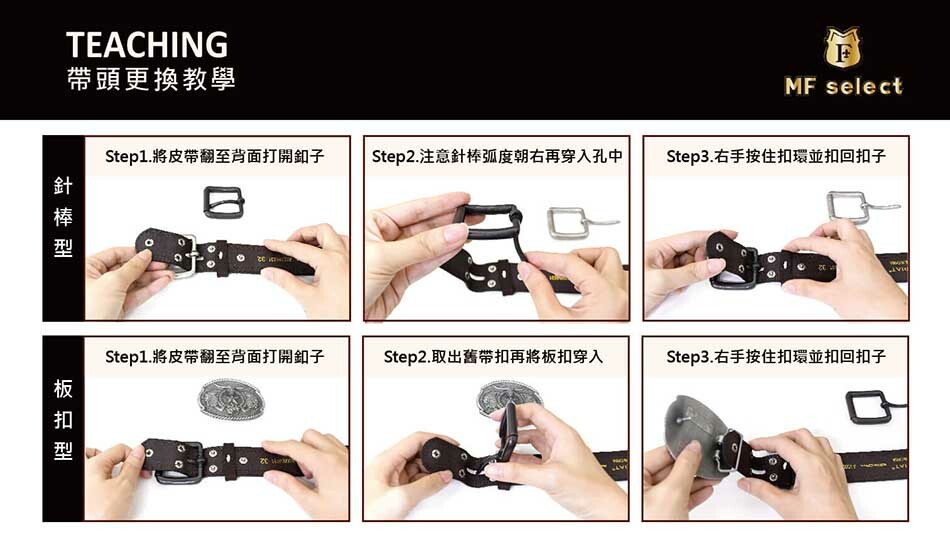 MF select的皮帶與別人的不一樣,皮帶頭皆可以快速更換不需要工具,