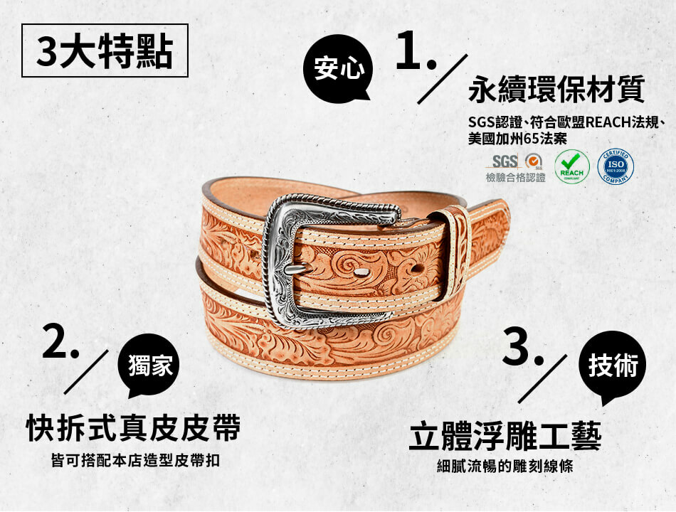 運用經典元素、復古刻花、個性鉚釘、真皮皮革、馬毛..等來完成每一款真皮皮帶的設計,
