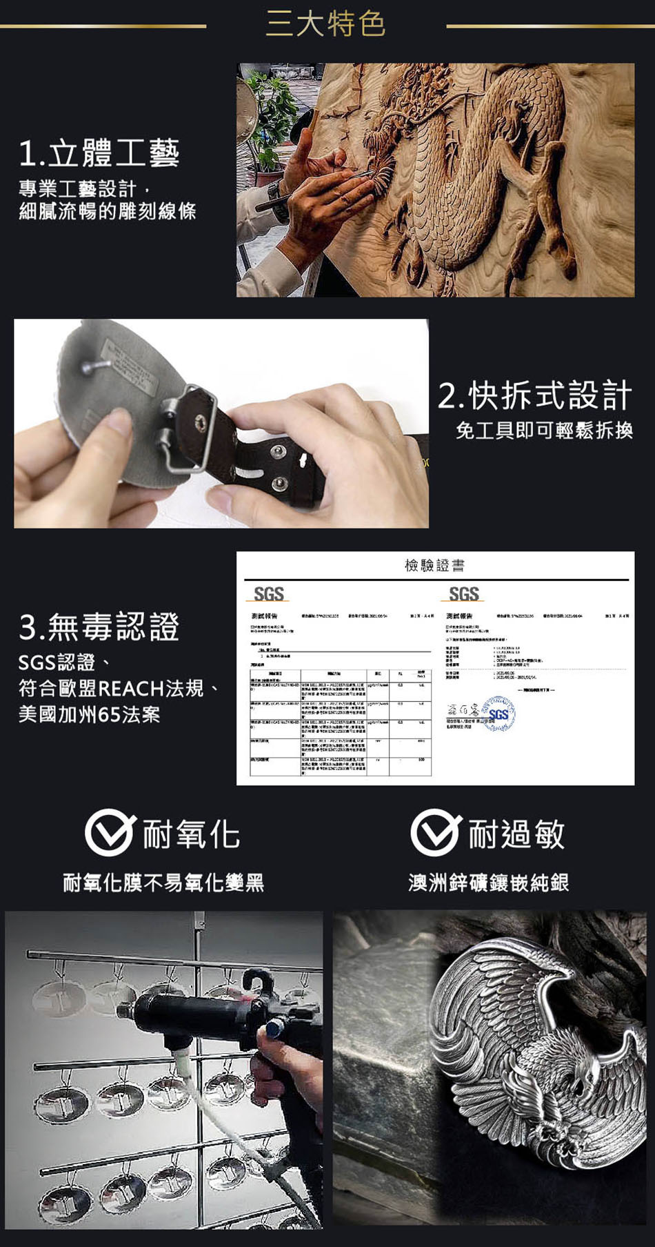造型皮帶扣的快速拆換,減去您使用工具的麻煩,讓您替換更多皮帶扣時更便利。