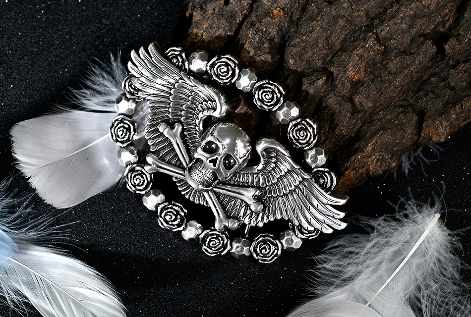 骷髏常給予人代表著死亡與負面,但其也是力量的象徵,同時也代表新的開始,也能比喻為改變命運追求新的人生。而天使的翅膀也代表溫暖與力量。玫瑰的點綴讓人生的路程給予多采多姿的歷練與個人魅力。