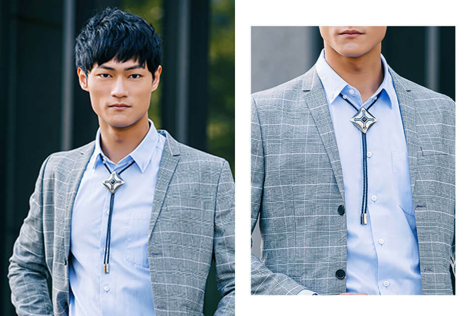 西裝襯衫搭傳統領帶一成不變,保羅領帶是取代沉悶的未來時尚,別緻獨特的飾品帶有優雅又精緻的細膩感,讓 bolo tie 在休閒或正式場合配戴都遊刃有餘。