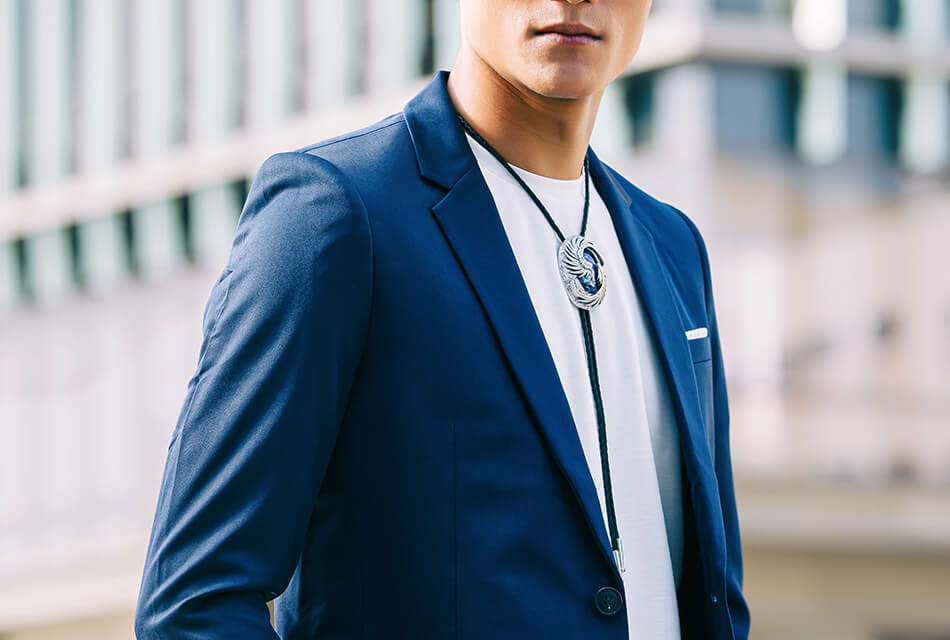 西裝襯衫搭傳統領帶一成不變,保羅領帶是取代沉悶的未來時尚,別緻獨特的飾品帶有優雅又精緻的細膩感,讓 bolo tie 在休閒或正式場合配戴都遊刃有餘。