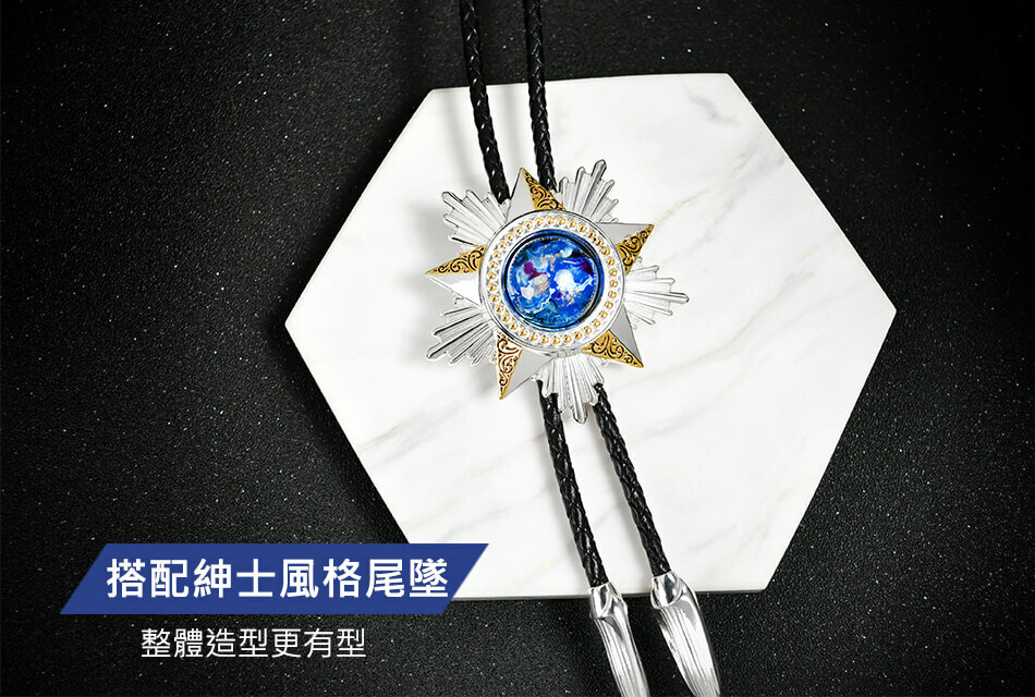 西裝襯衫搭傳統領帶一成不變,保羅領帶是取代沉悶的未來時尚,別緻獨特的飾品帶有優雅又精緻的細膩感,讓 bolo tie 在休閒或正式場合配戴都遊刃有餘。