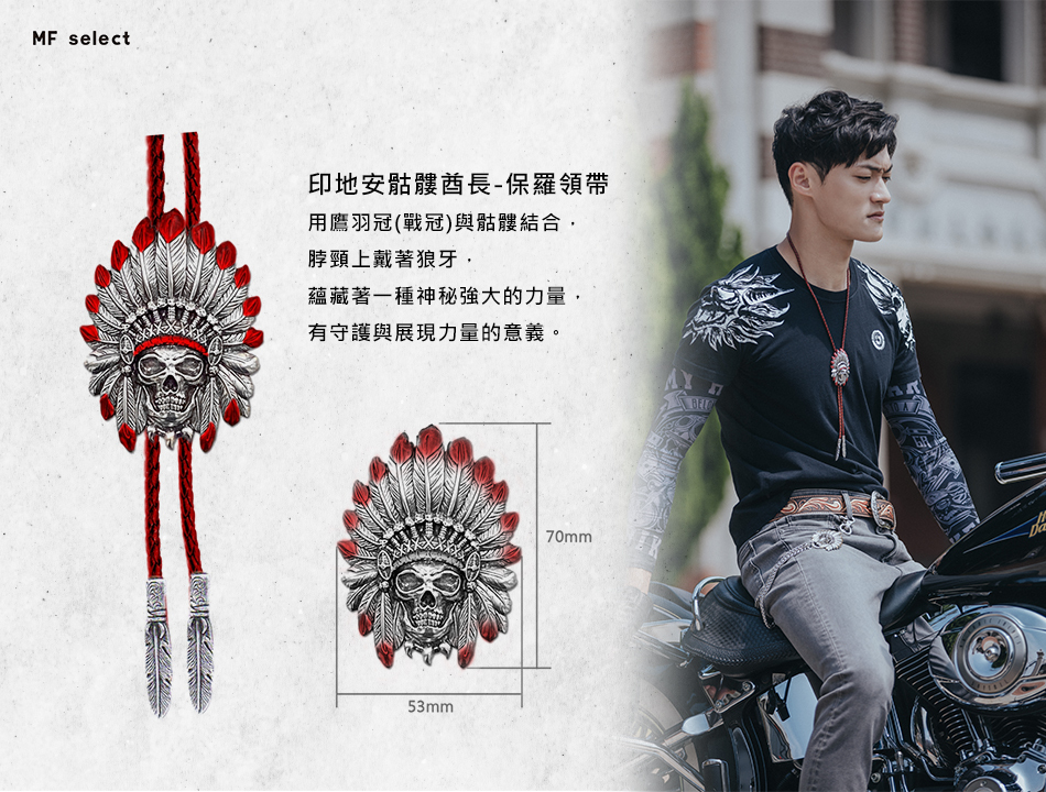 MF select保羅領帶(Bolo tie)專家,源於美式自由率性精神,打造強烈風格穿搭飾品,以硬派、都會休閒、復古紳士三種風格詮釋狂野、帥氣、經典等品味引領潮流。