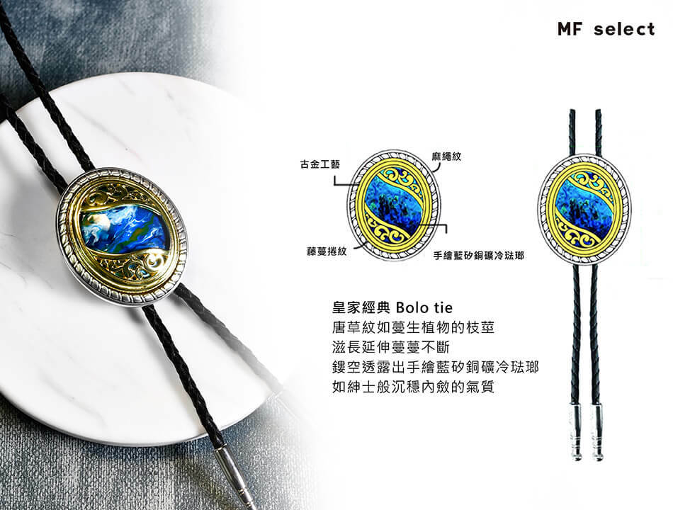 MF select保羅領帶(Bolo tie)專家,源於美式自由率性精神,打造強烈風格穿搭飾品,以硬派、都會休閒、復古紳士三種風格詮釋狂野、帥氣、經典等品味引領潮流。