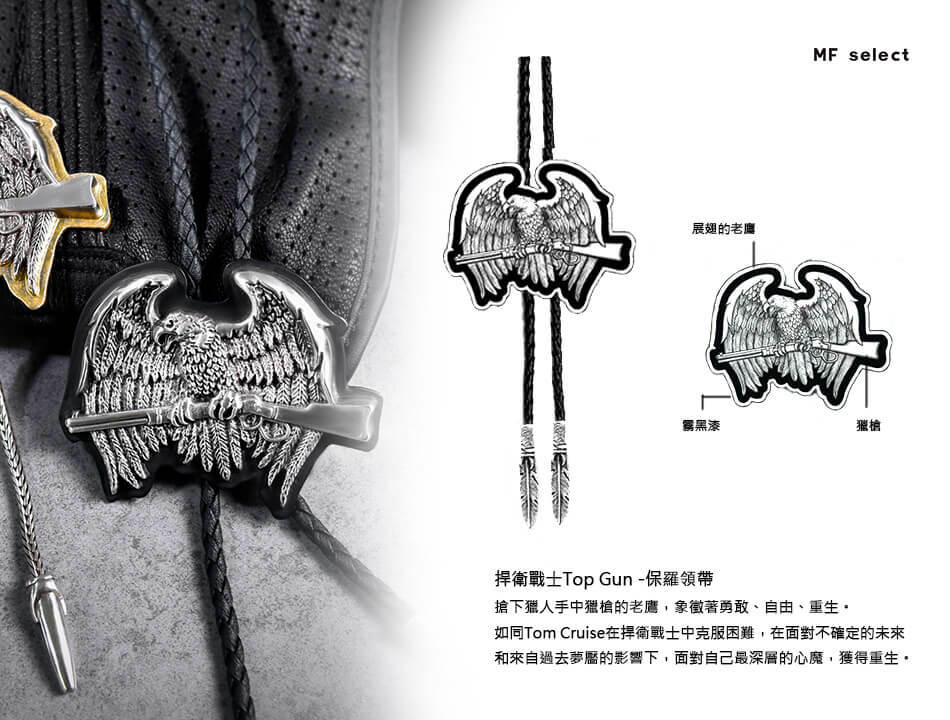 MF select保羅領帶(Bolo tie)專家,源於美式自由率性精神,打造強烈風格穿搭飾品,以硬派、都會休閒、復古紳士三種風格詮釋狂野、帥氣、經典等品味引領潮流。