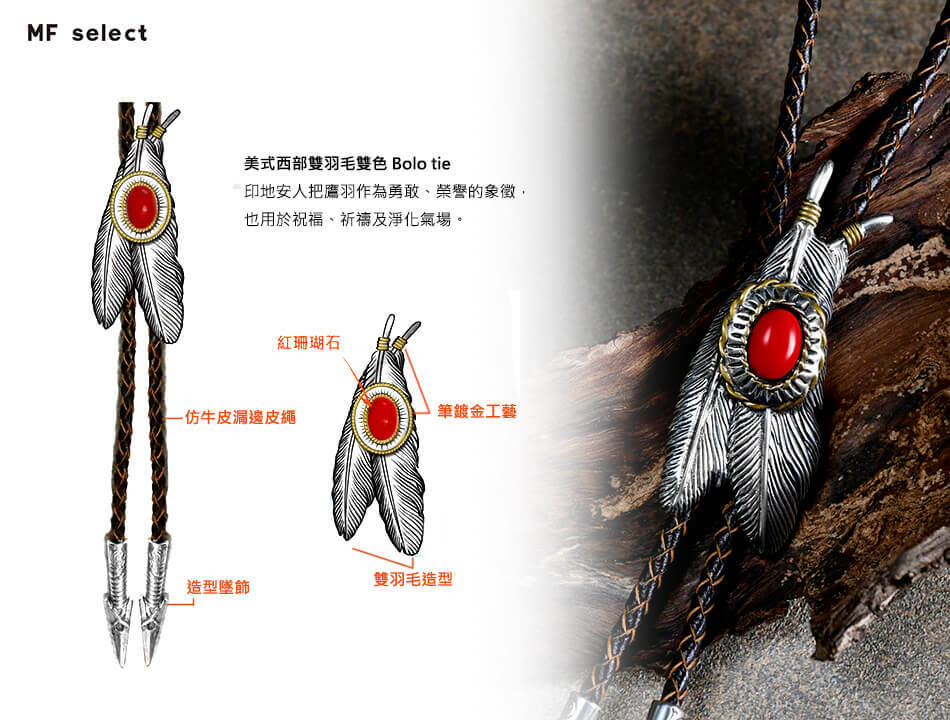 MF select保羅領帶(Bolo tie)專家,源於美式自由率性精神,打造強烈風格穿搭飾品,以硬派、都會休閒、復古紳士三種風格詮釋狂野、帥氣、經典等品味引領潮流。