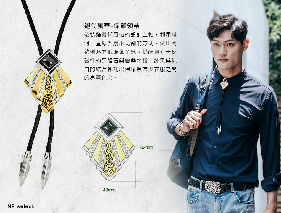 MF select保羅領帶(Bolo tie)專家,源於美式自由率性精神,打造強烈風格穿搭飾品,以硬派、都會休閒、復古紳士三種風格詮釋狂野、帥氣、經典等品味引領潮流。