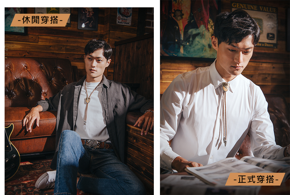 西裝襯衫搭傳統領帶一成不變,保羅領帶是取代沉悶的未來時尚,別緻獨特的飾品帶有優雅又精緻的細膩感,讓 bolo tie 在休閒或正式場合配戴都遊刃有餘。