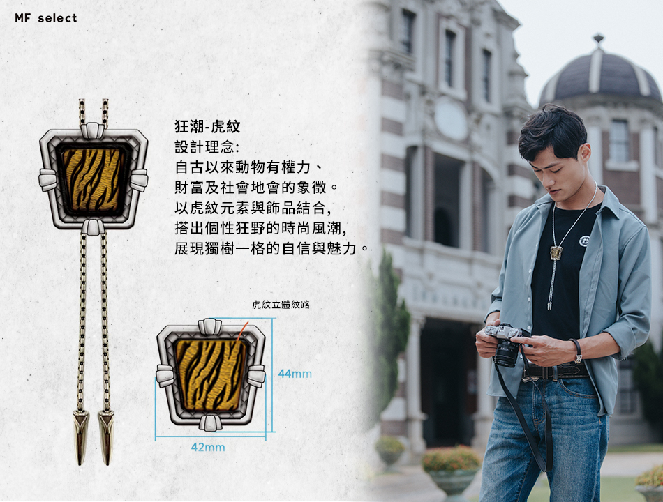 MF select保羅領帶(Bolo tie)專家,源於美式自由率性精神,打造強烈風格穿搭飾品,以硬派、都會休閒、復古紳士三種風格詮釋狂野、帥氣、經典等品味引領潮流。