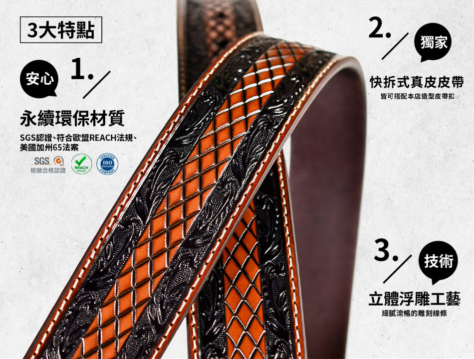 商品項目:保羅領帶(Bolo tie)、項鍊、手鍊、快拆皮帶、造型手工帶扣、潮流帽等率性飾品,商品皆使用環保材質,符合美國加州65法案及歐盟REACH法規。