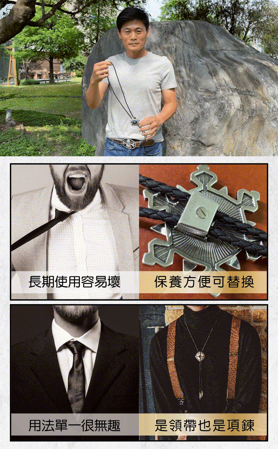 西裝襯衫搭傳統領帶一成不變,保羅領帶是取代沉悶的未來時尚,別緻獨特的飾品帶有優雅又精緻的細膩感,讓 bolo tie 在休閒或正式場合配戴都遊刃有餘。
