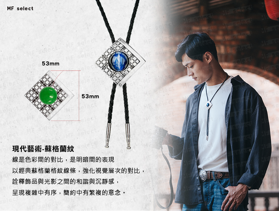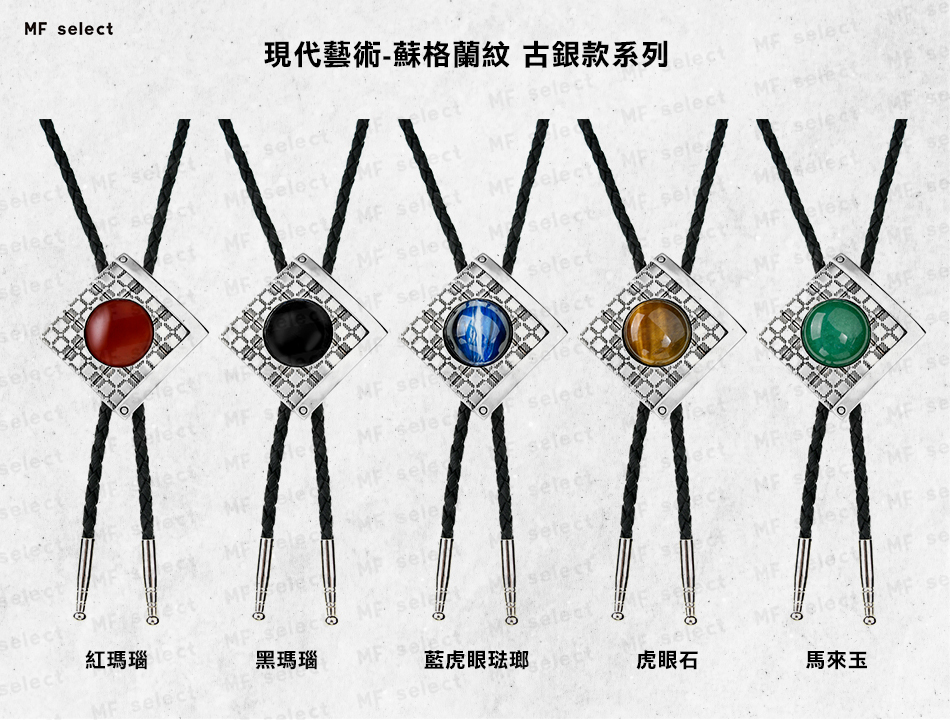 MF select保羅領帶(Bolo tie)專家,源於美式自由率性精神,打造強烈風格穿搭飾品,以硬派、都會休閒、復古紳士三種風格詮釋狂野、帥氣、經典等品味引領潮流。