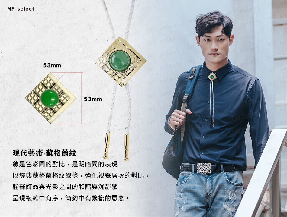 MF select保羅領帶(Bolo tie)專家,源於美式自由率性精神,打造強烈風格穿搭飾品,以硬派、都會休閒、復古紳士三種風格詮釋狂野、帥氣、經典等品味引領潮流。
