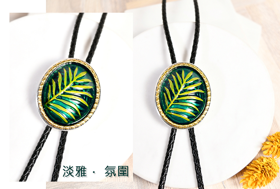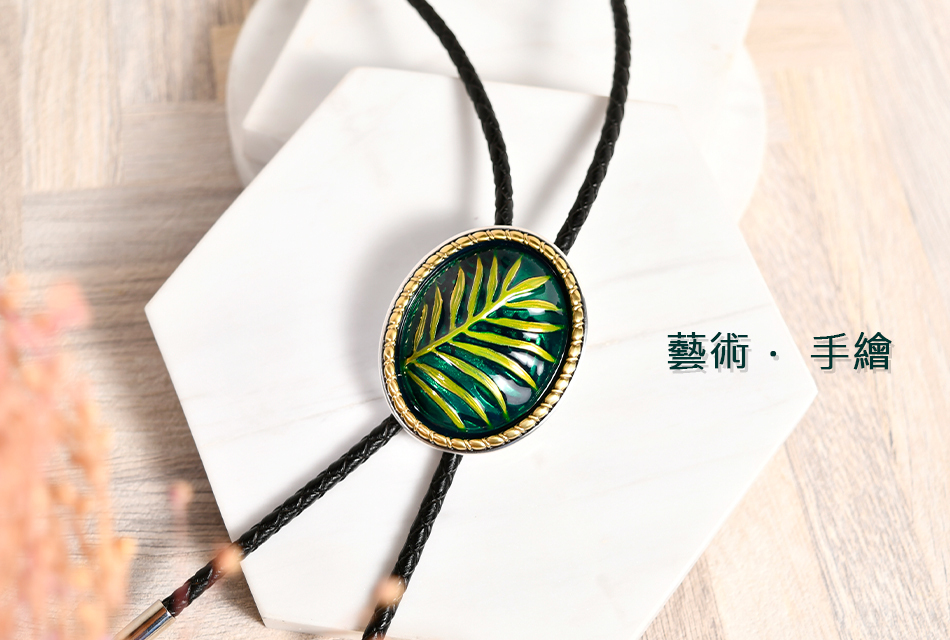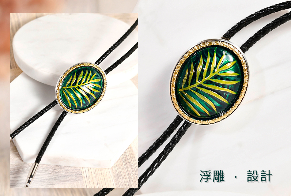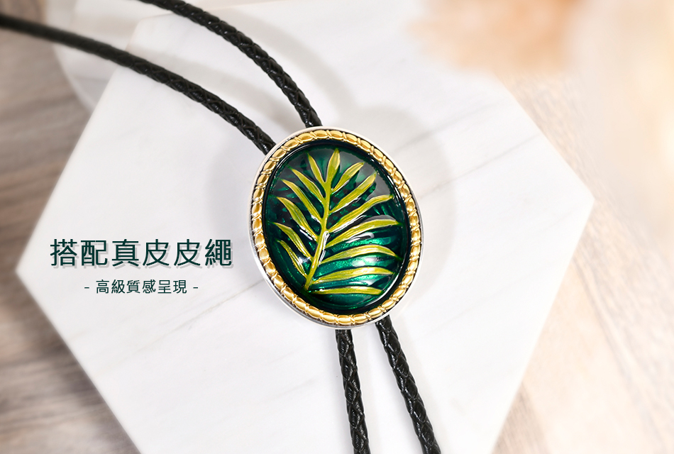 夏日風情-棕櫚葉 真皮皮繩 保羅領帶/Bolo Tie/美式領帶 - 快速出貨