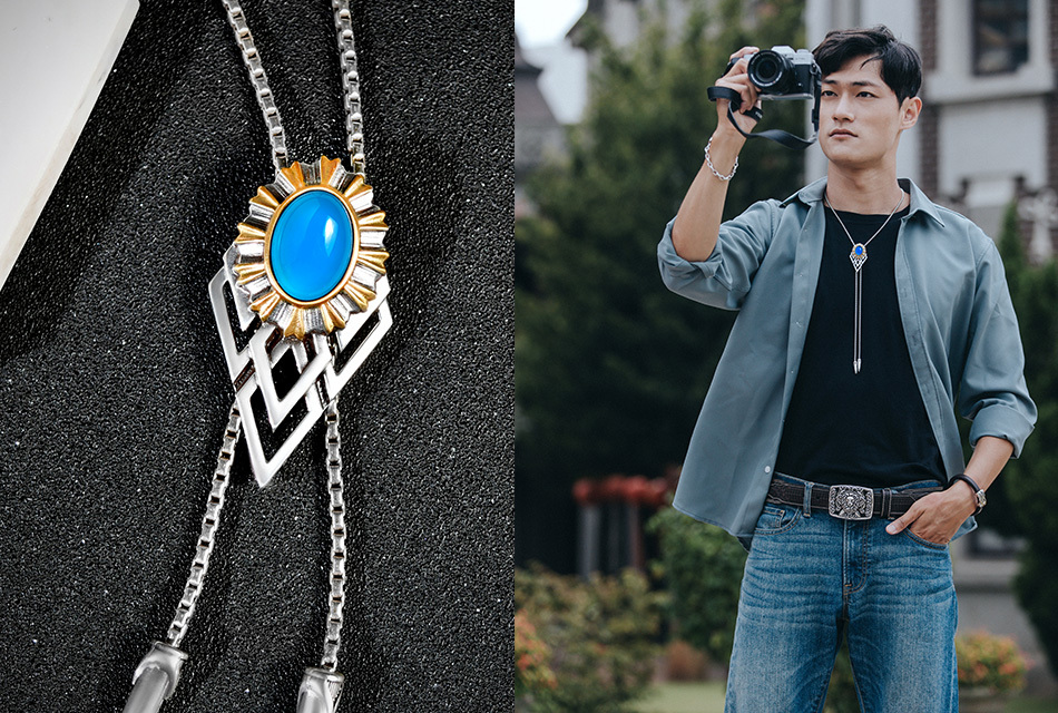 西裝襯衫搭傳統領帶一成不變,保羅領帶是取代沉悶的未來時尚,別緻獨特的飾品帶有優雅又精緻的細膩感,讓 bolo tie 在休閒或正式場合配戴都遊刃有餘。