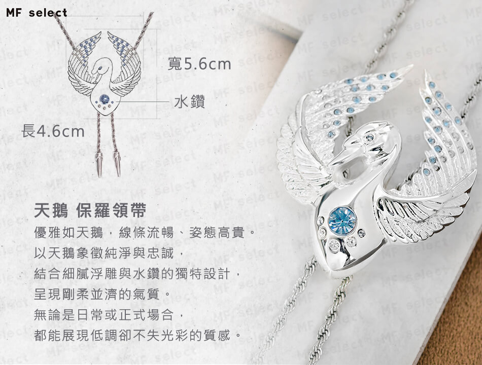 MF select保羅領帶(Bolo tie)專家,源於美式自由率性精神,打造強烈風格穿搭飾品,以硬派、都會休閒、復古紳士三種風格詮釋狂野、帥氣、經典等品味引領潮流。