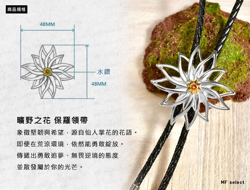MF select保羅領帶(Bolo tie)專家,源於美式自由率性精神,打造強烈風格穿搭飾品,以硬派、都會休閒、復古紳士三種風格詮釋狂野、帥氣、經典等品味引領潮流。