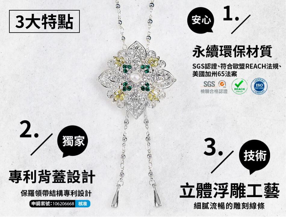 商品項目:保羅領帶(Bolo tie)、項鍊、手鍊、快拆皮帶、造型手工帶扣、潮流帽等率性飾品,商品皆使用環保材質,符合美國加州65法案及歐盟REACH法規。