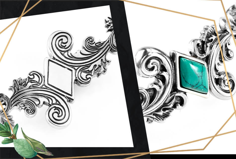 • 飾片材質:澳洲鋅原礦鑲嵌純銀+綠松石