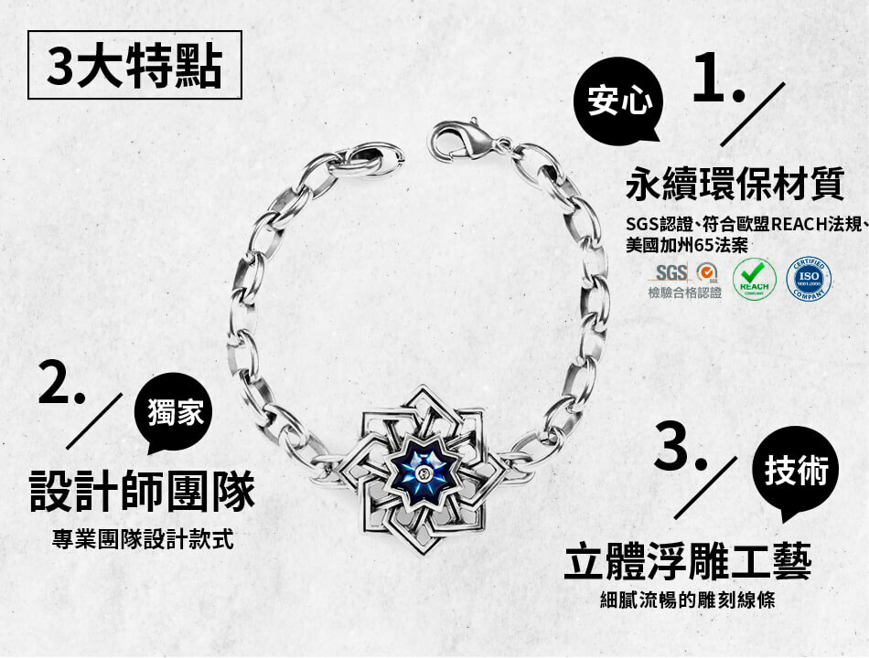 手鍊融和多元的文化元素與金工工藝玩出迷人風格,展現強烈卻不張揚的潮流個性飾品。