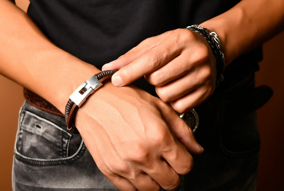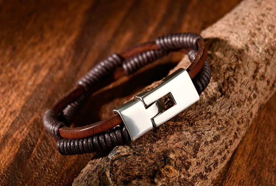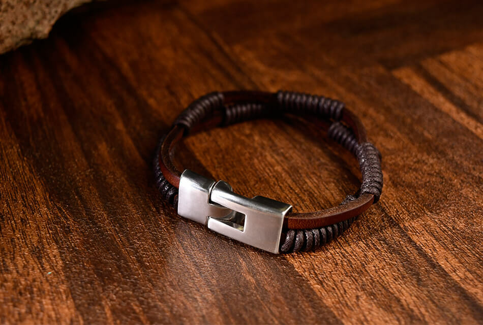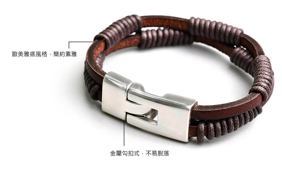高級牛皮皮革製成的皮革手環,堅固耐用。手工編織