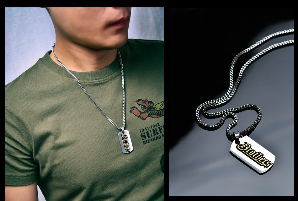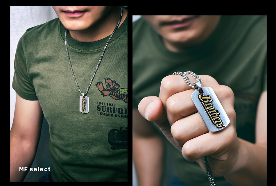 中信兄弟商品人氣推薦,中華職棒球隊-中信兄弟與MFselect聯名開發款,聯名美式領帶設計元素以中信兄弟猛象圖騰、Brothers文字,結合MF美式風格及古著工藝底蘊,精雕細琢量身訂作中信兄弟率性飾品,完整呈現粗曠及細膩兼具的精緻品味,展現兄弟項鍊在運動界的張力與時尚感。休閒、正裝都可搭配。美國流行穿搭金屬個性飾品。網路推薦人氣爆棚中信兄弟商品,男女皆可配戴,讓飾品襯托出不一樣的你。